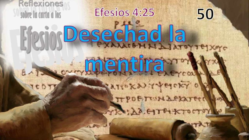 En el caso de los Efesios creyentes que ya habían repudiado definitivamente la mentira al aceptar la verdad. El significado del versículo 25 podría ser entonces: “Sean congruentes y consecuentes. para que vuestra vida sea un testimonio de vuestra fe y al haberse despojado de la falsedad, practicad ahora la verdad”.