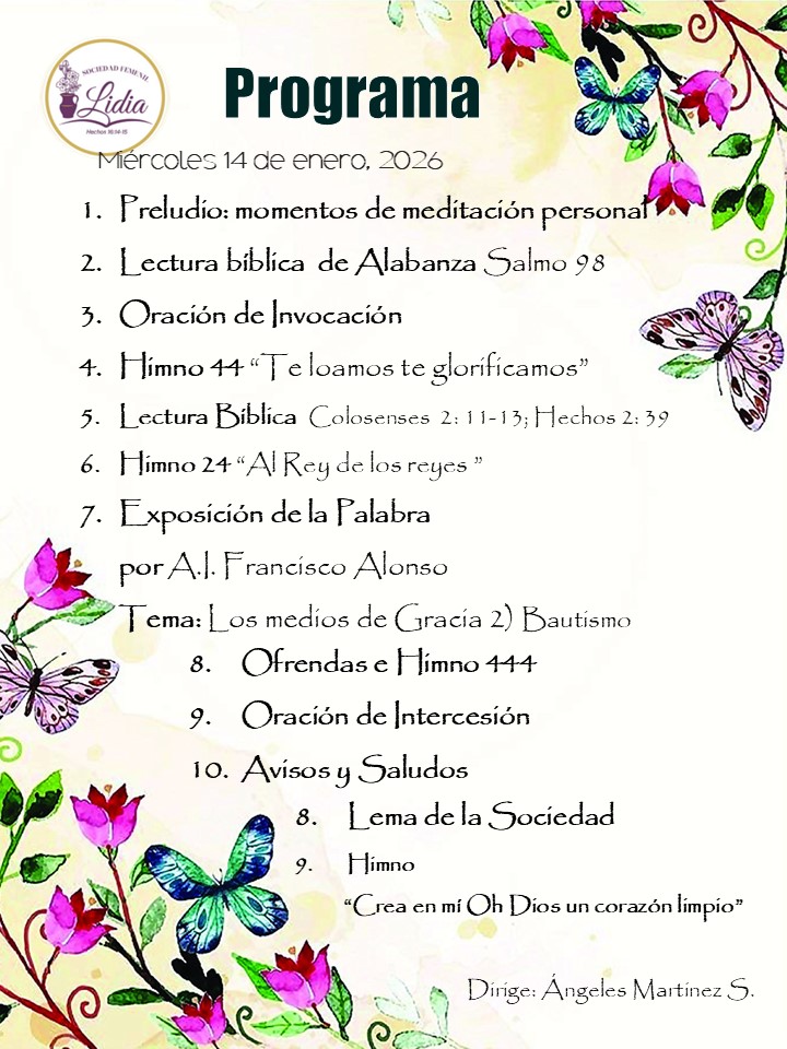 Sociedad Femenil Lidia – 14 de enero, 2026 enero 14, 20268580 Views Dios mediante la reunión se llevará a cabo presencial y en línea, las esperamos Acceso a Reunión Virtual Zoom de hoy (5:00 pm – Ciudad de México): Unirse a la reunión Zoom ID de reunión: 88024930543Código de acceso: 582319 Comparte con tus amigos